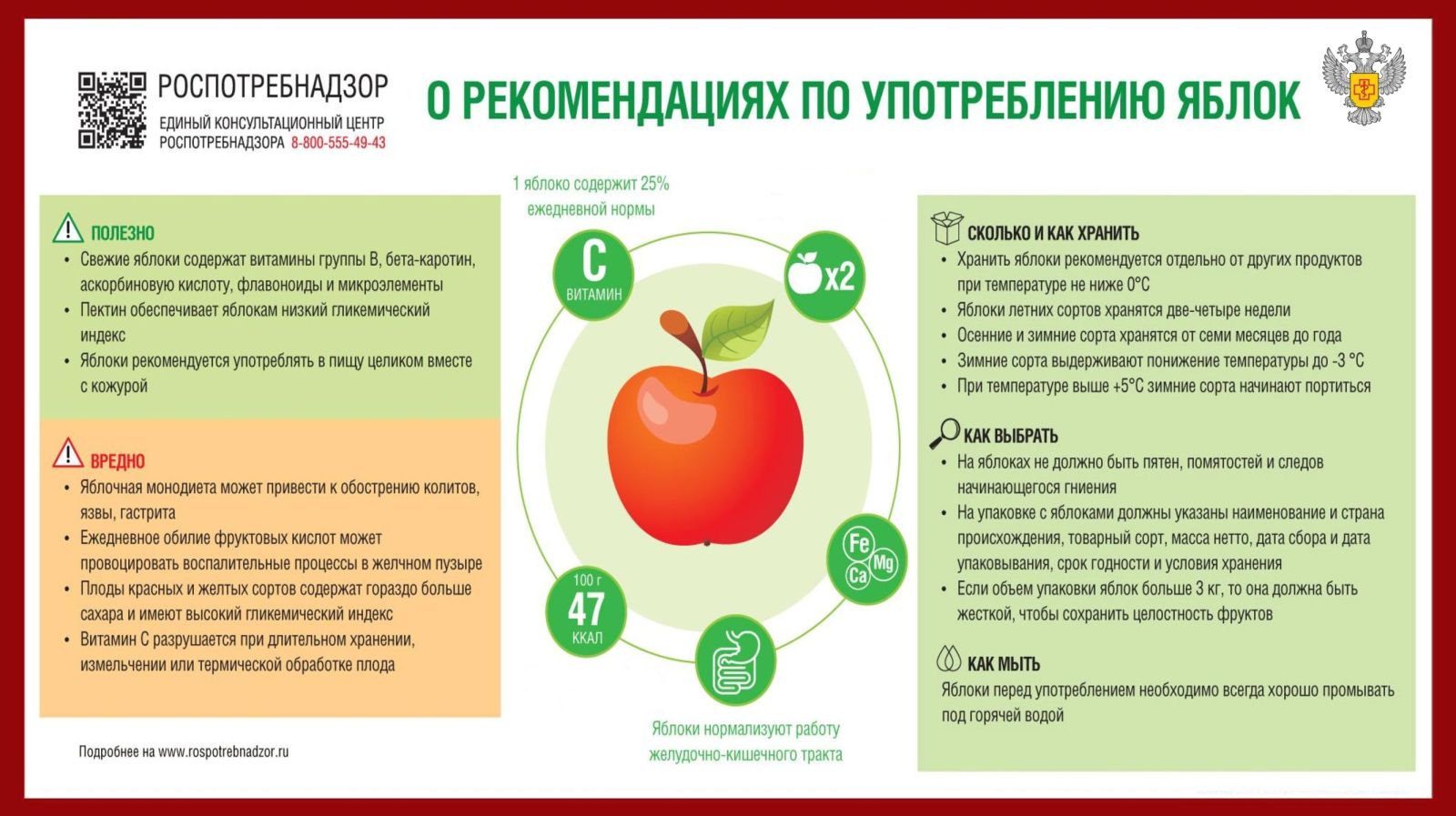 Подробнее о рекомендациях по употреблению яблок читайте в карточке.