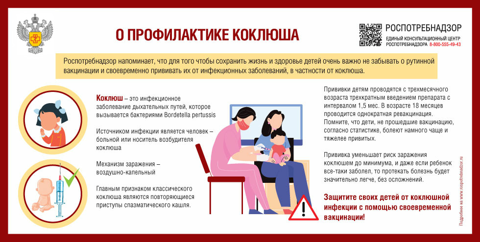 Помните, что дети, не прошедшие вакцинацию, согласно статистике, болеют намного чаще и тяжелее привитых. Прививка уменьшает риск заражения коклюшем до минимума, и даже если ребенок все-таки заболел, то протекать болезнь будет значительно легче, без осложнений.