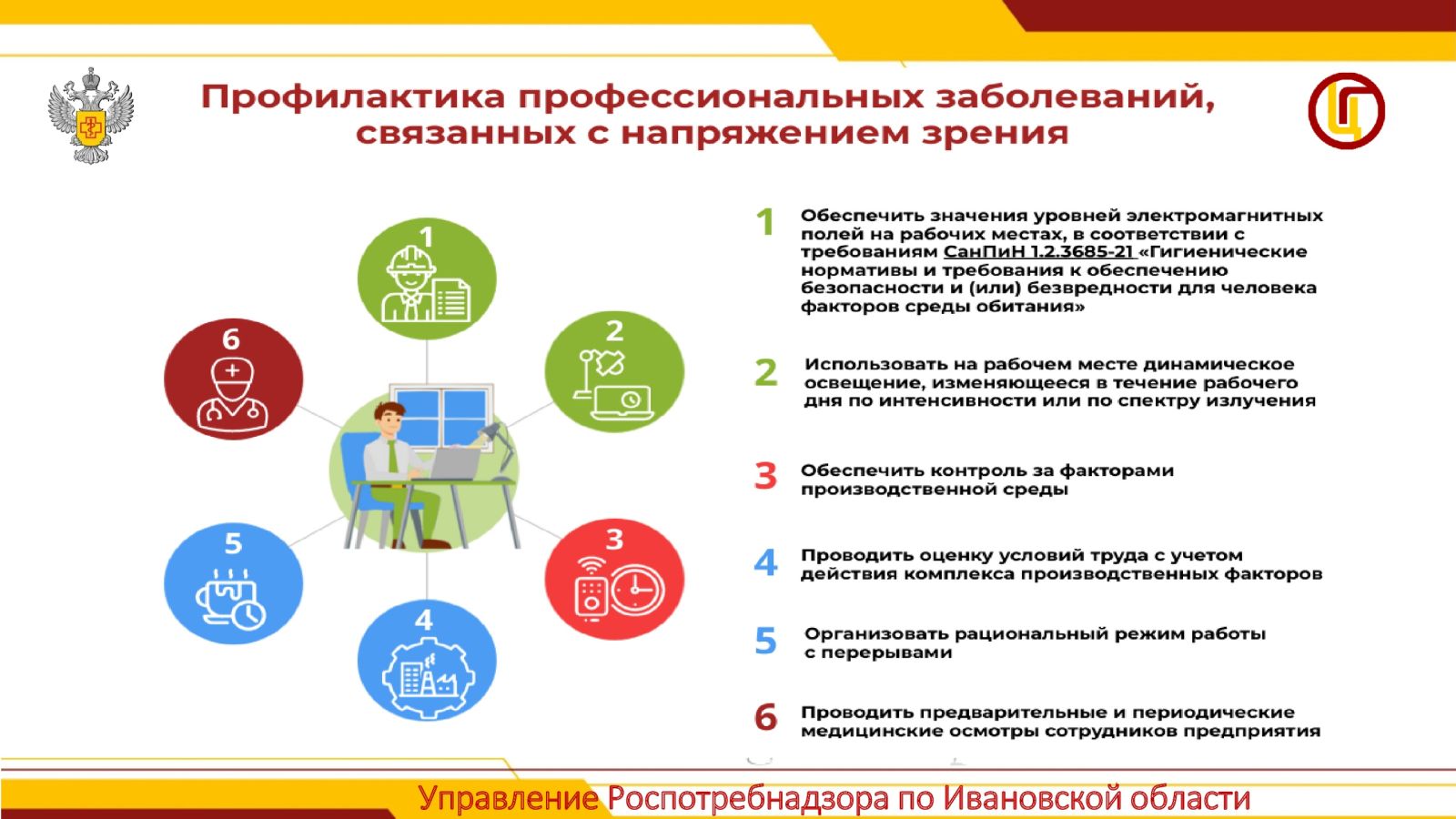 Управление Роспотребнадзора по Ивановской области напоминает об основных правилах профилактики профессиональных заболеваний, связанных с напряжением зрения: