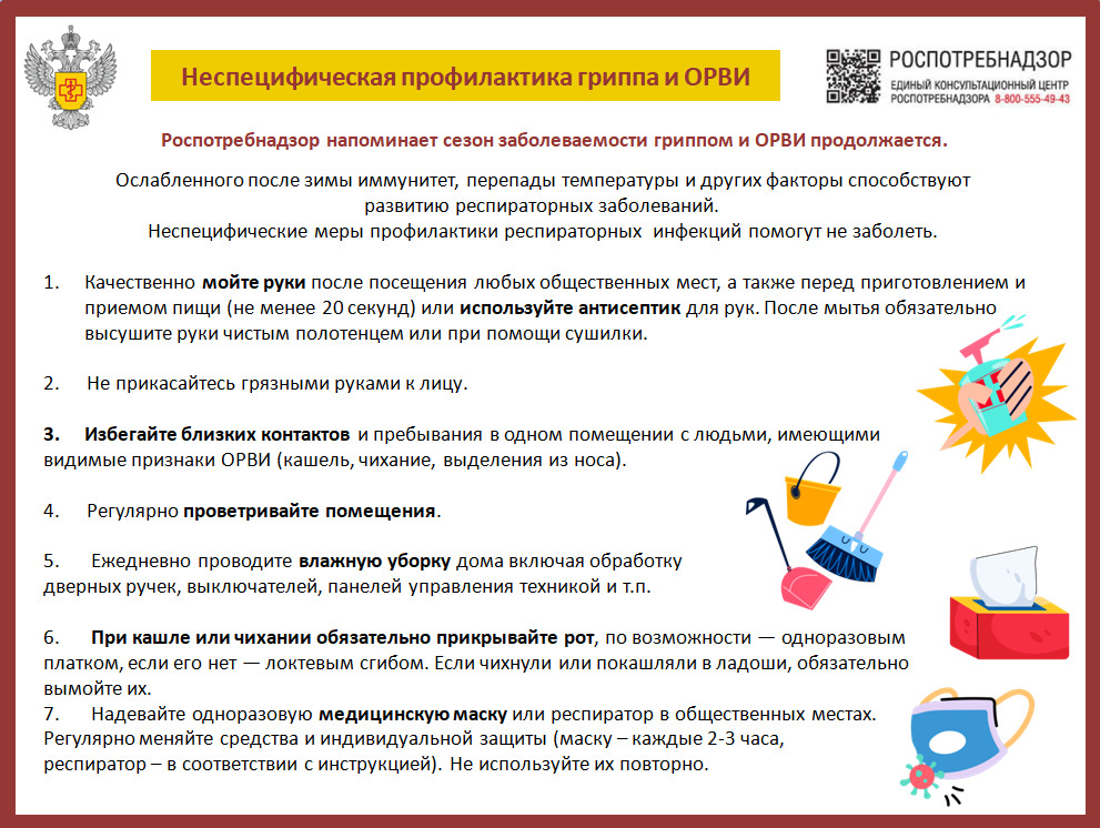 Управление Роспотребнадзора по Ивановской области напоминает, что с наступлением весны сезон заболеваемости гриппом и ОРВИ не завершается.