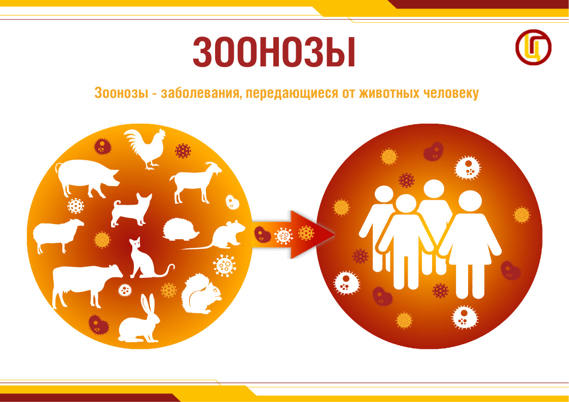 Зоонозные инфекции - это группа инфекционных заболеваний, которыми могут болеть и человек, и животные. Человек заражается от инфицированного животного, от человека к человеку инфекция не передается. К зоонозам относятся бруцеллез, лептоспироз, туляремия, бешенство, сибирская язва, гельминтозы, листериоз, геморрагические лихорадки и другие.